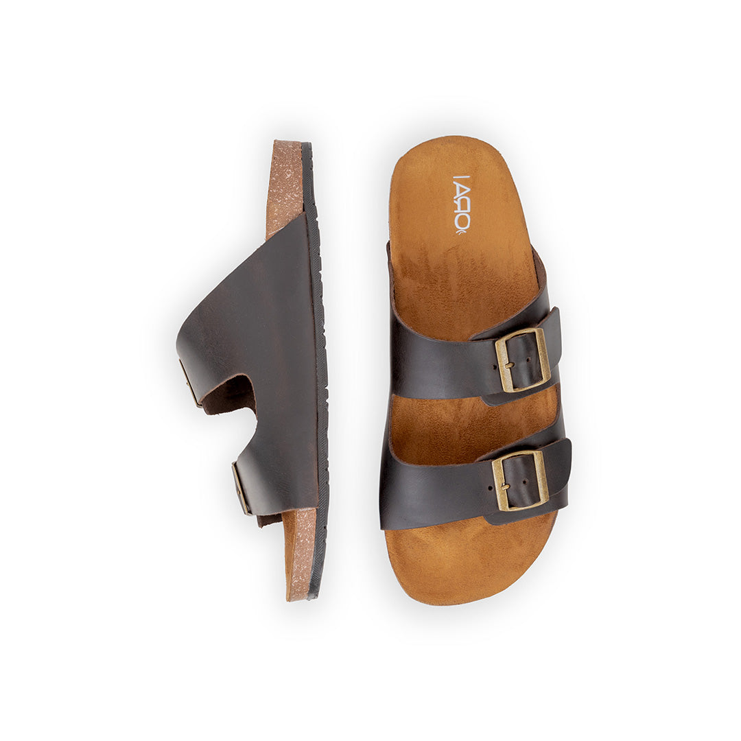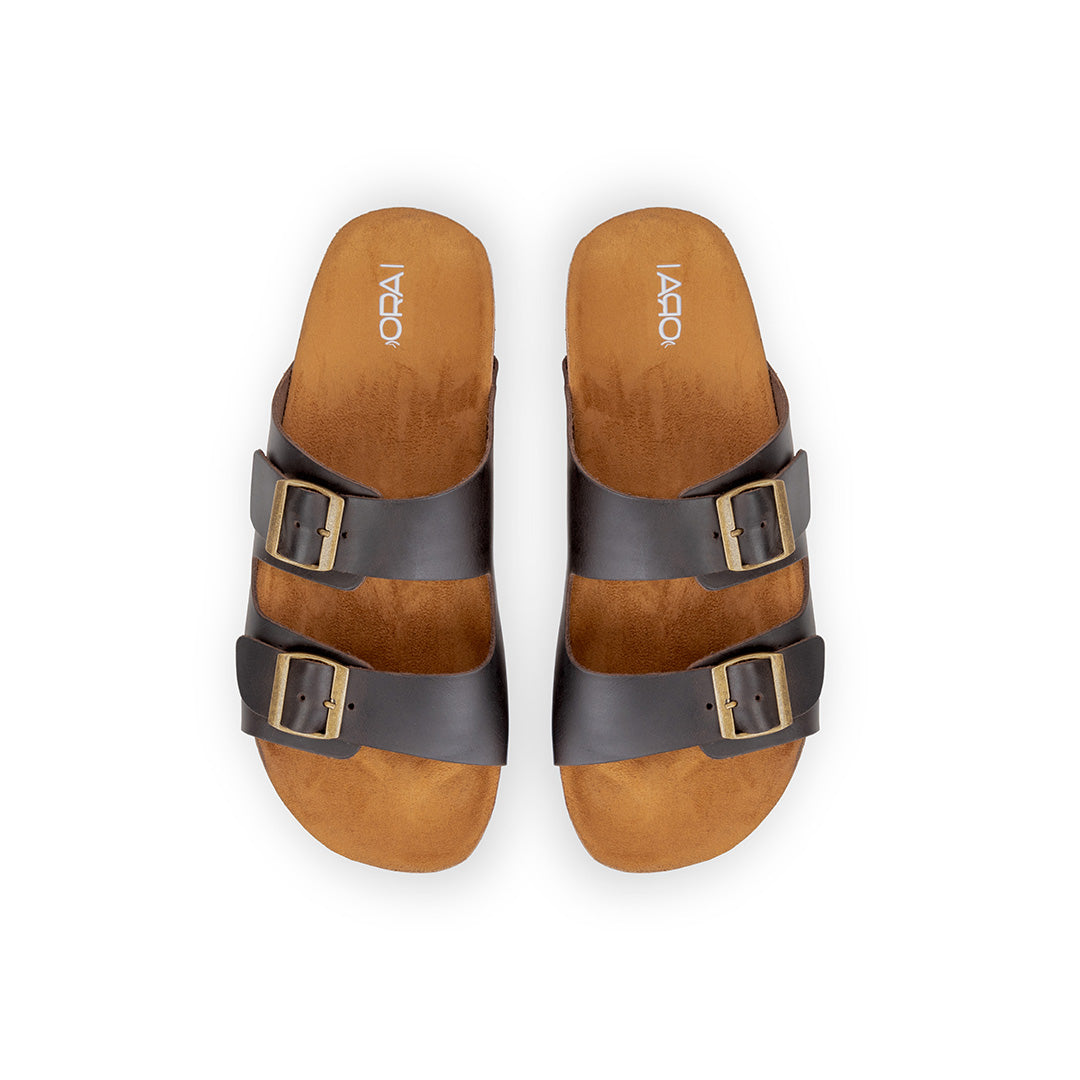 Brown Double Buckle Slides
