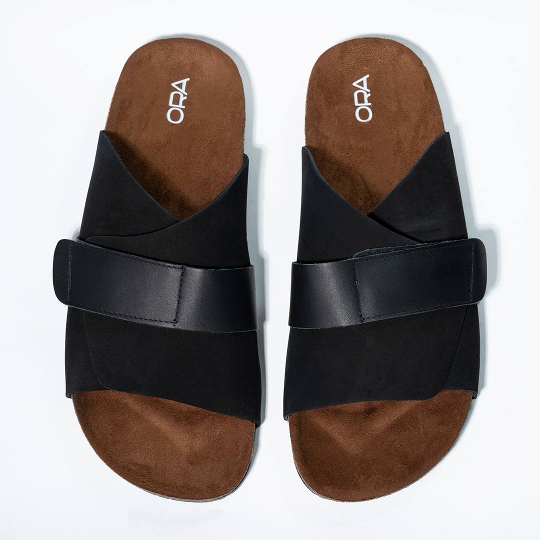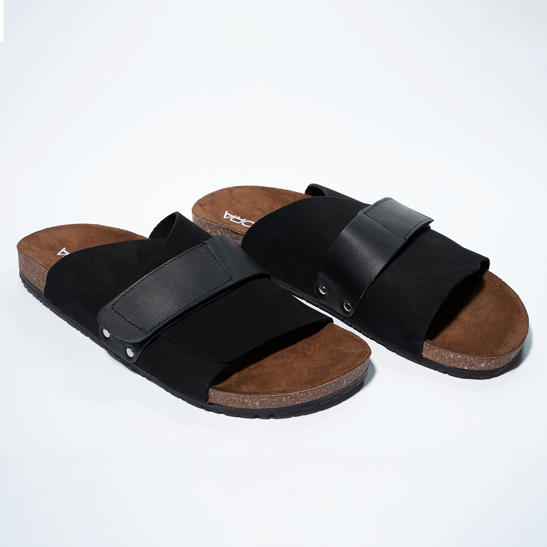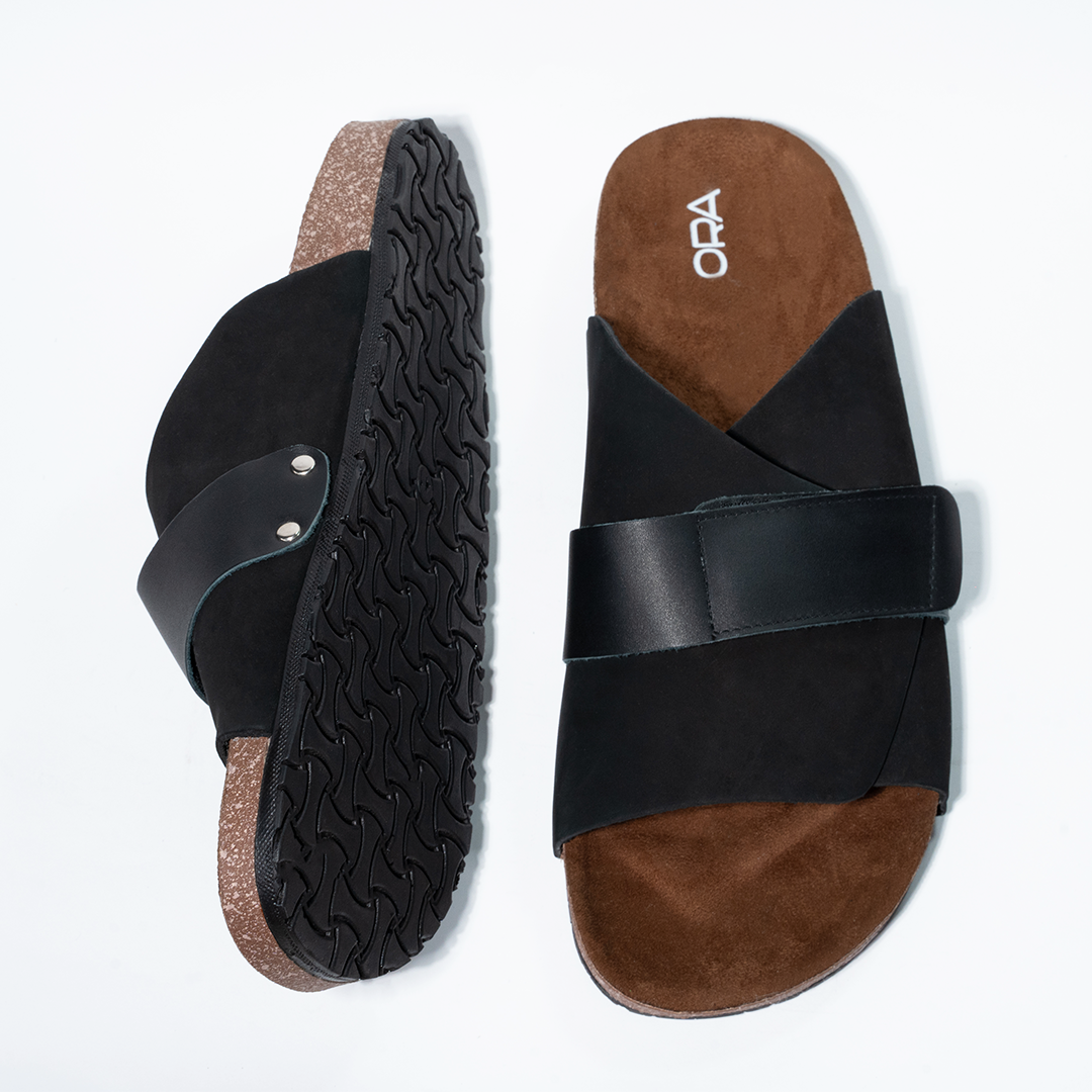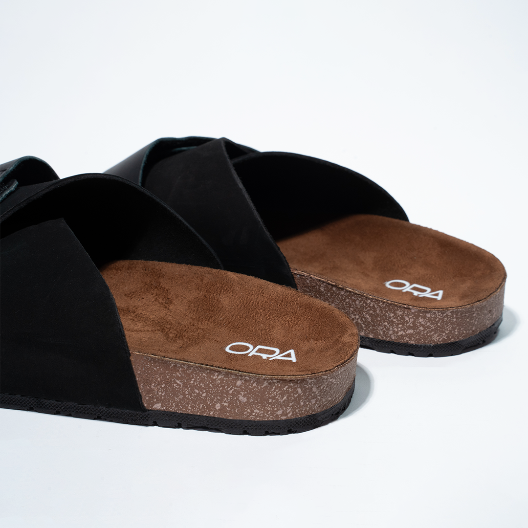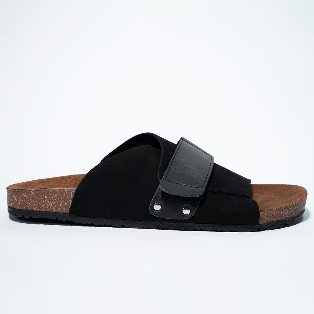Cork Cushion Cross Slides - Black